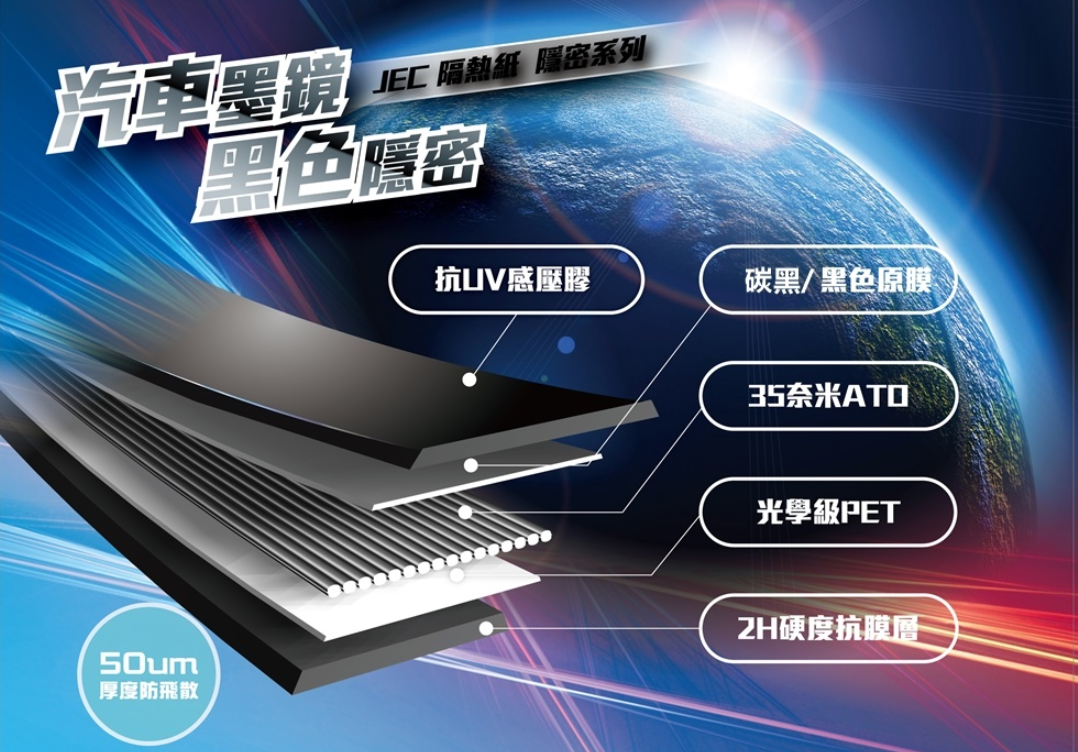 JEC隔熱紙不僅保留陶瓷隔熱紙高IR特性,更以頂尖的技術突破一般陶瓷隔熱紙藍霧現象,以新的產品來提供駕駛人的服務,去除藍霧得以更清晰。