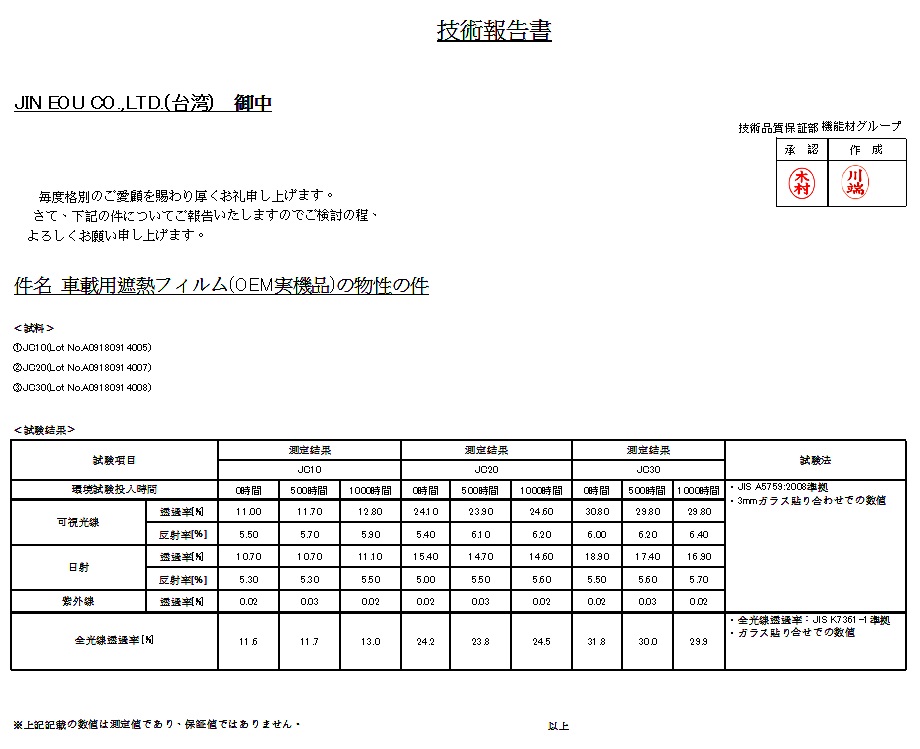 J.E.C. 於2016年全球發行第一款霧度最低的双奈米陶瓷(Carbon+ATO)隔熱紙BA系列:BA40產品。